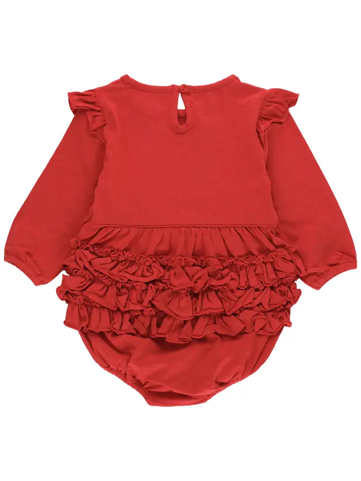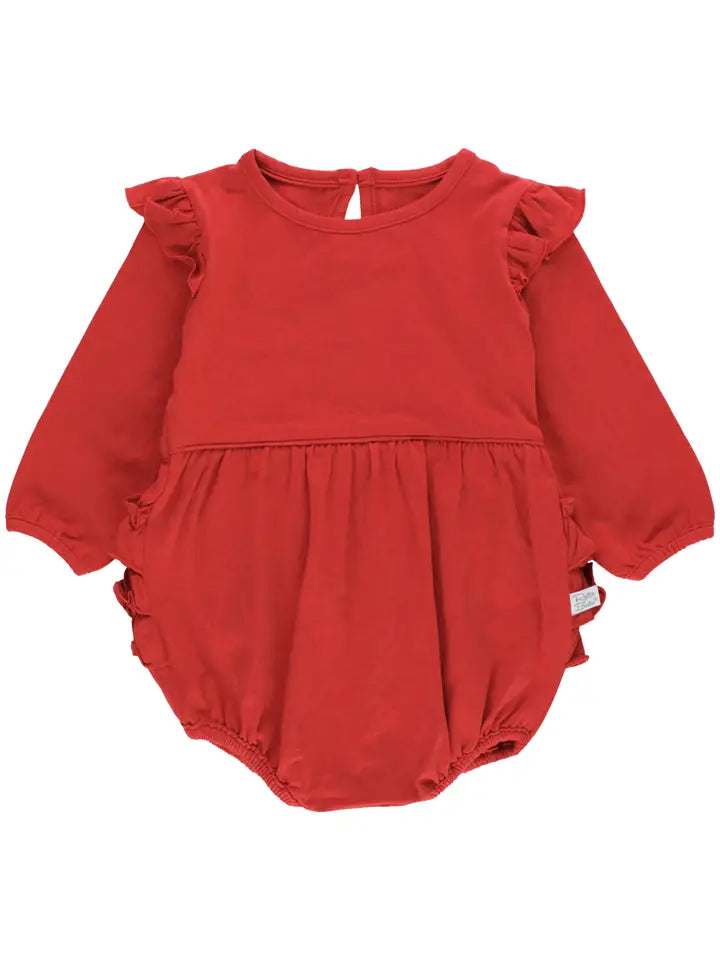Baby Girls Red Knit Long Sleeve Flutter Bubble Romper