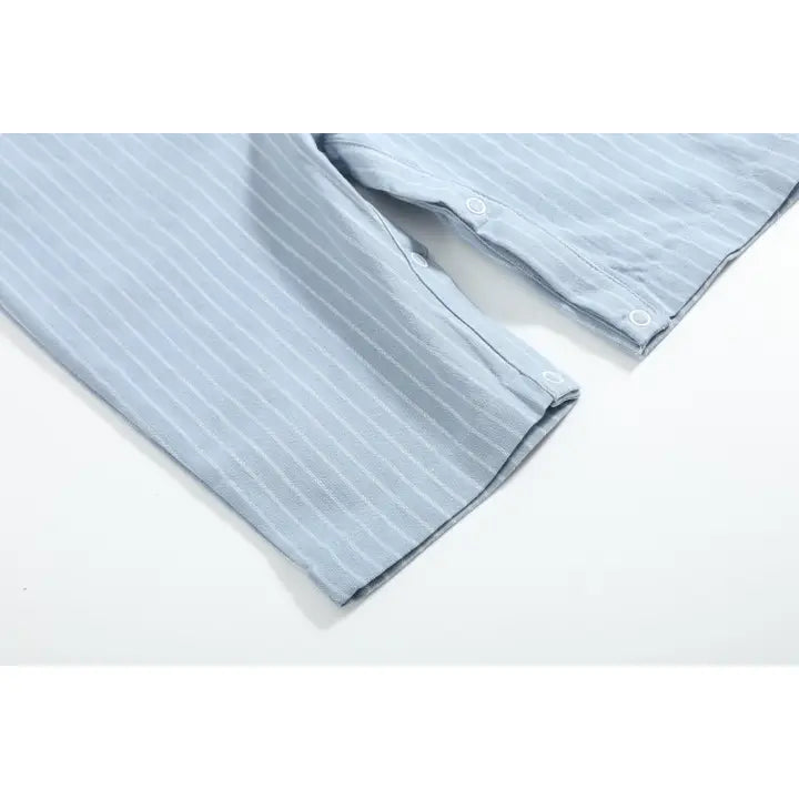 Blue Pinstripe Mallard Duck Smocked Overalls