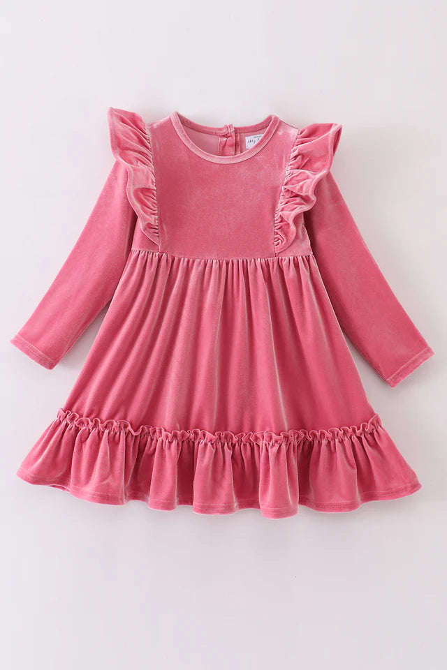 Pink velvet ruffle dress